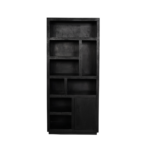 Ontdek vakkenkast FSBR, gemaakt van mangohout en afgewerkt met een prachtige zwarte afwerking. De vakkenkast heeft een strak en modern design, waarbij functionaliteit en stijl samenkomen. Met vijf open vakken en twee greeploze deuren, voorzien van een push-to-open systeem, biedt deze kast niet alleen voldoende ruimte voor het weergeven van boeken en decoratieve items, maar ook voor het handige opbergen van diverse items.