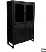 Vitrinekast mangohout zwart 115cm BEBR