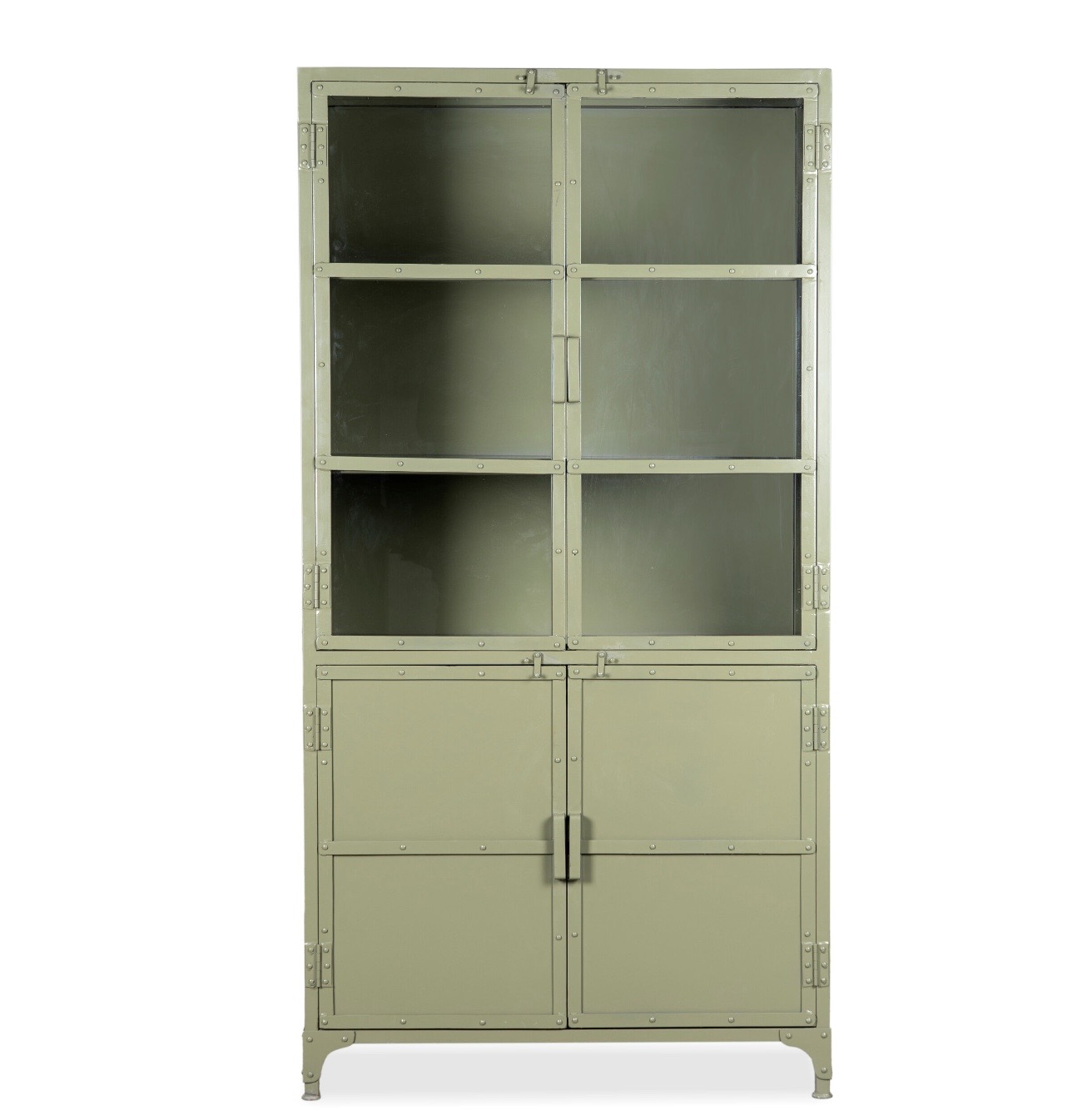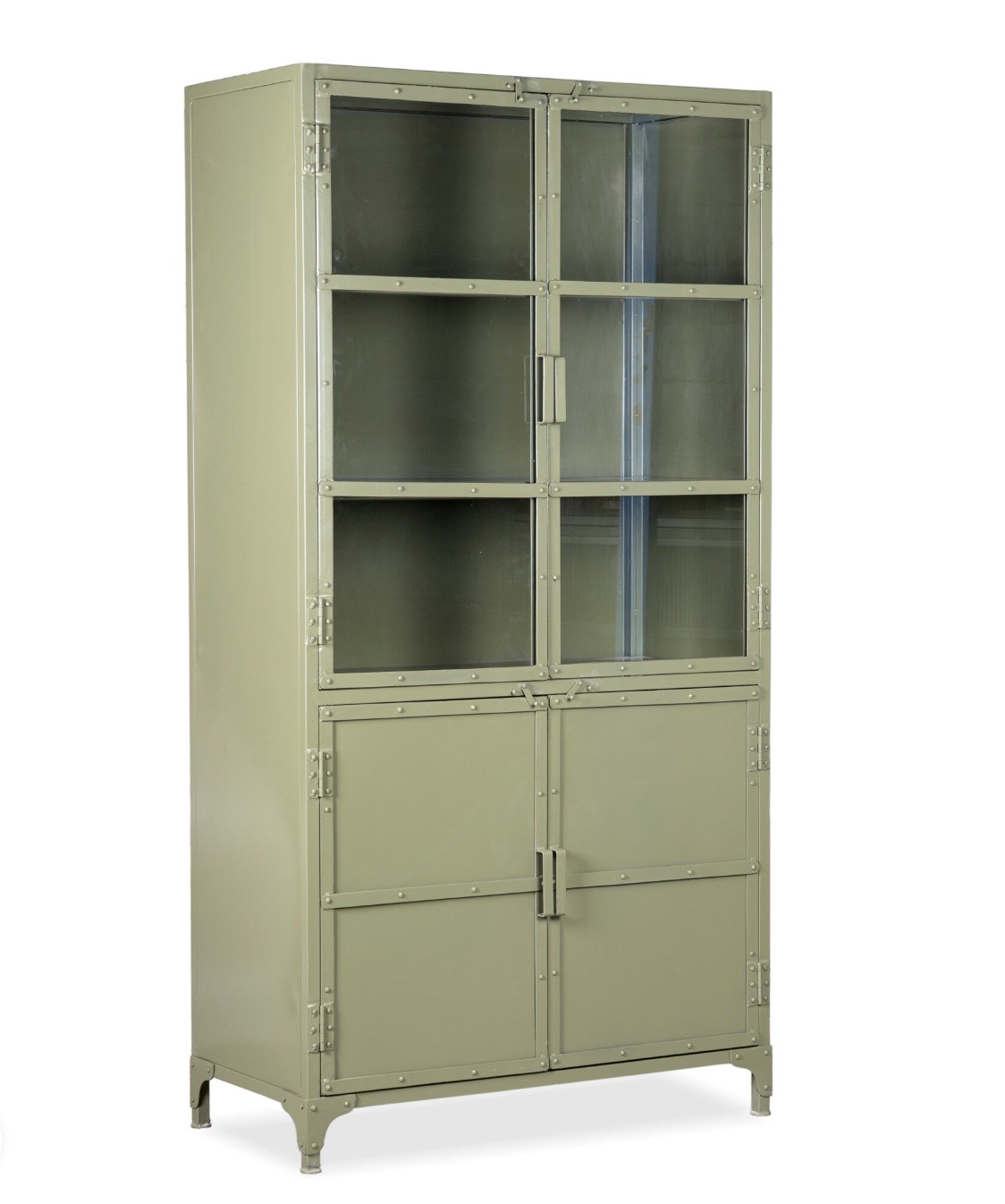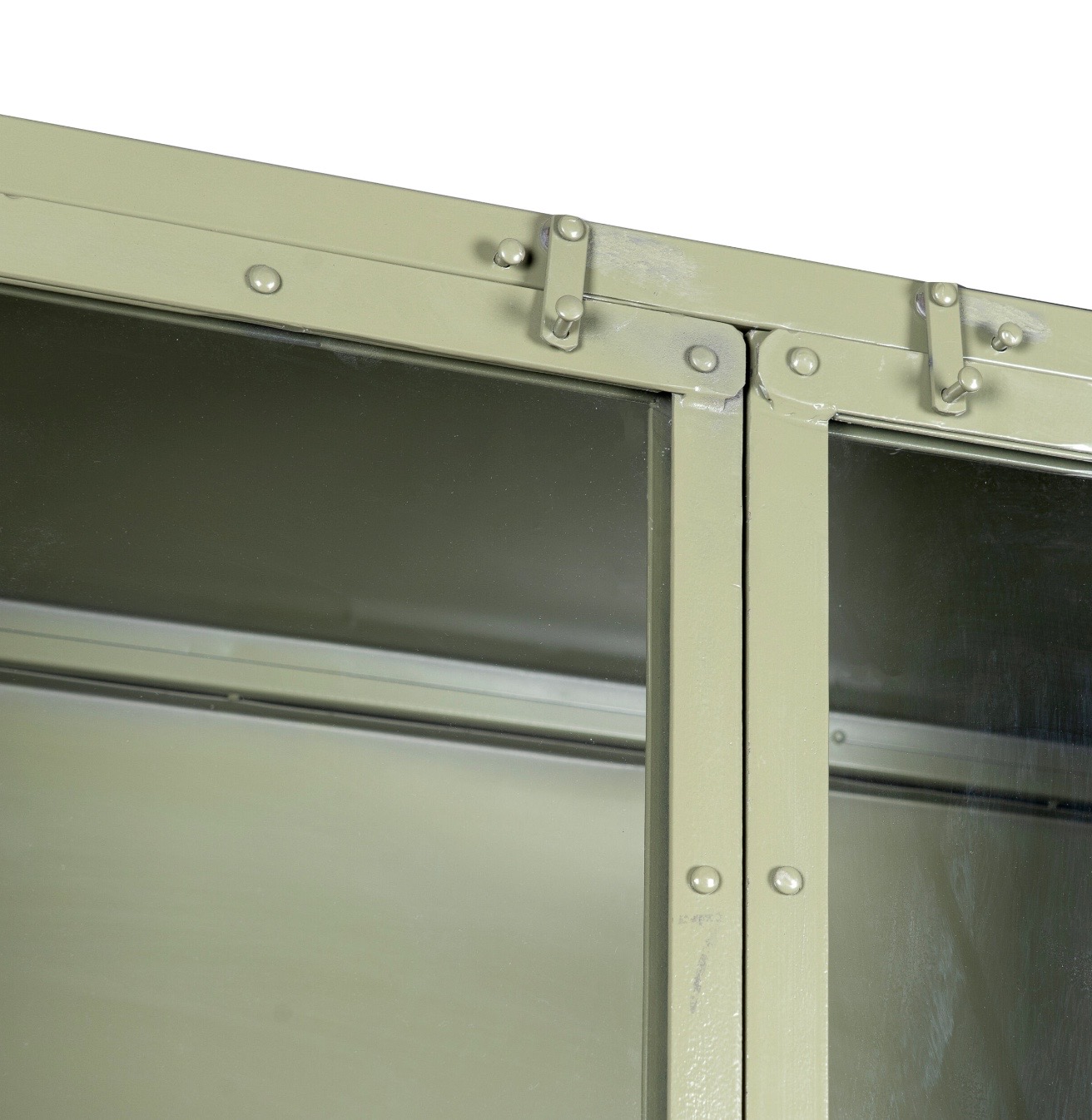 Vitrinekast Montana olijf groen van Mango Houten Meubels is een ambachtelijke gemaakte metalen buffetkast met een stoer industrieel uiterlijk.